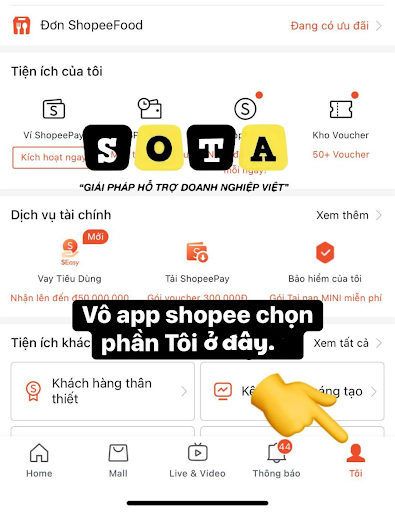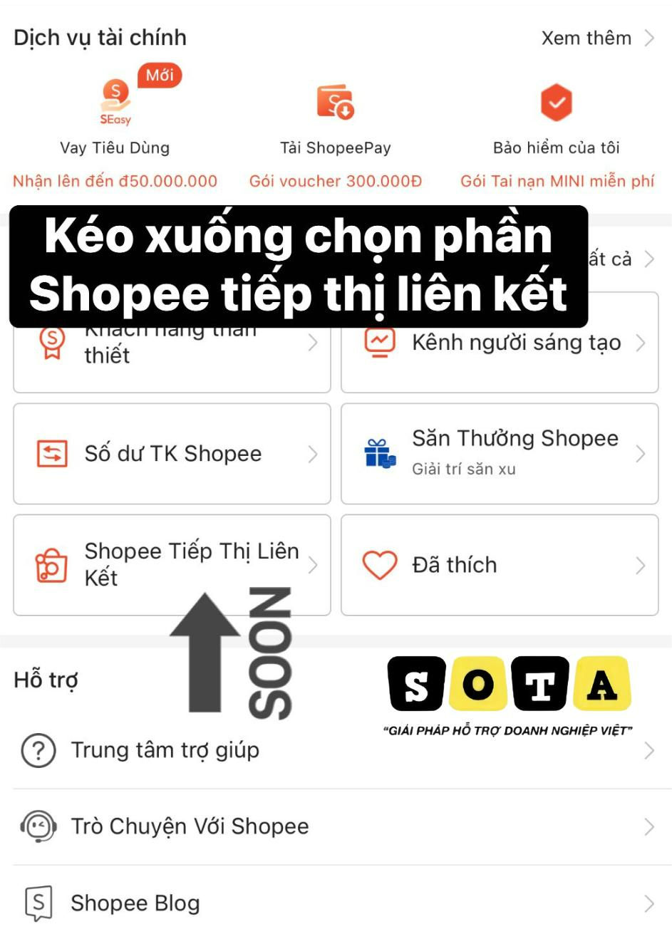 - Sau khi đăng nhập, vào mục “Tôi” → “Shopee Tiếp Thị Liên Kết.”