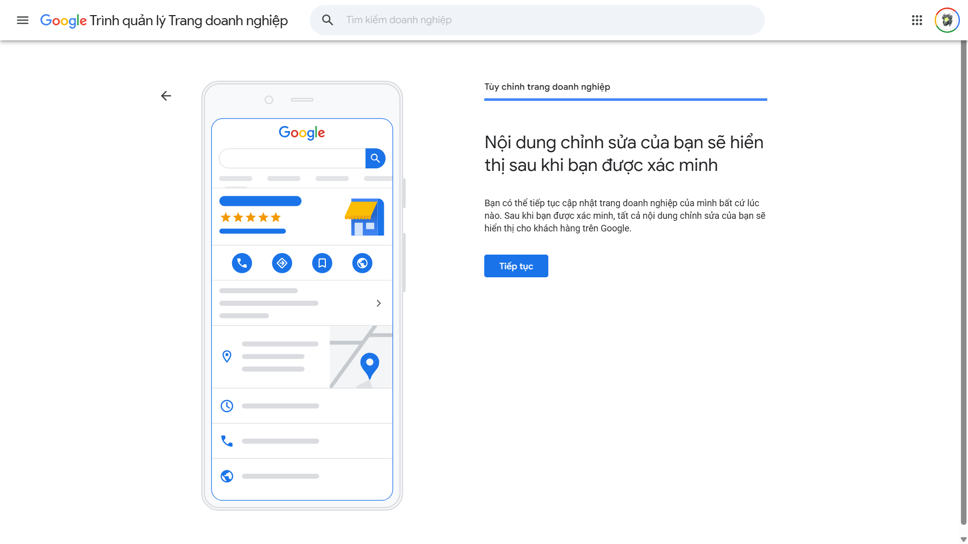 Giao diện trang doanh nghiệp và địa điểm Google Maps đã xác minh thành công