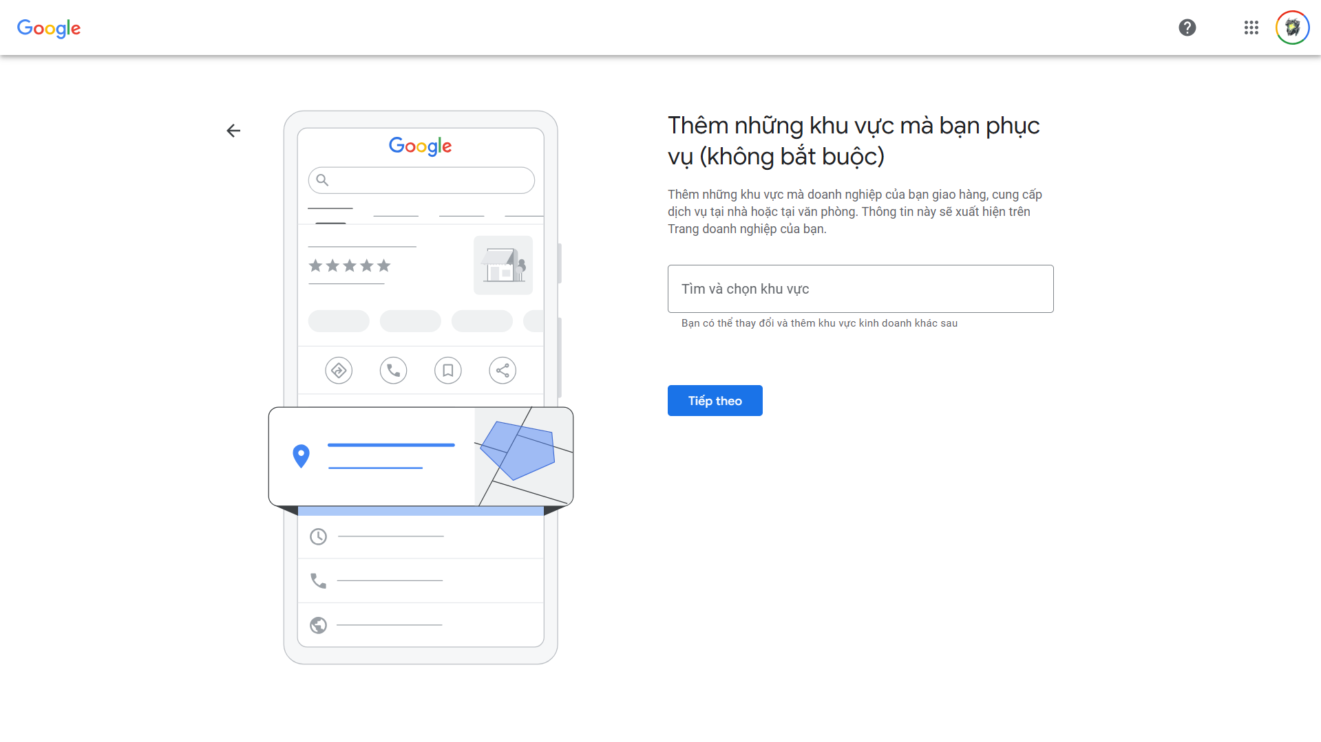 Lựa chọn nhập khững khu vực mà bạn hoạt động để khách hàng có thể nhận biết đồng thời giúp Google đề xuất khi khách hàng tìm kiếm