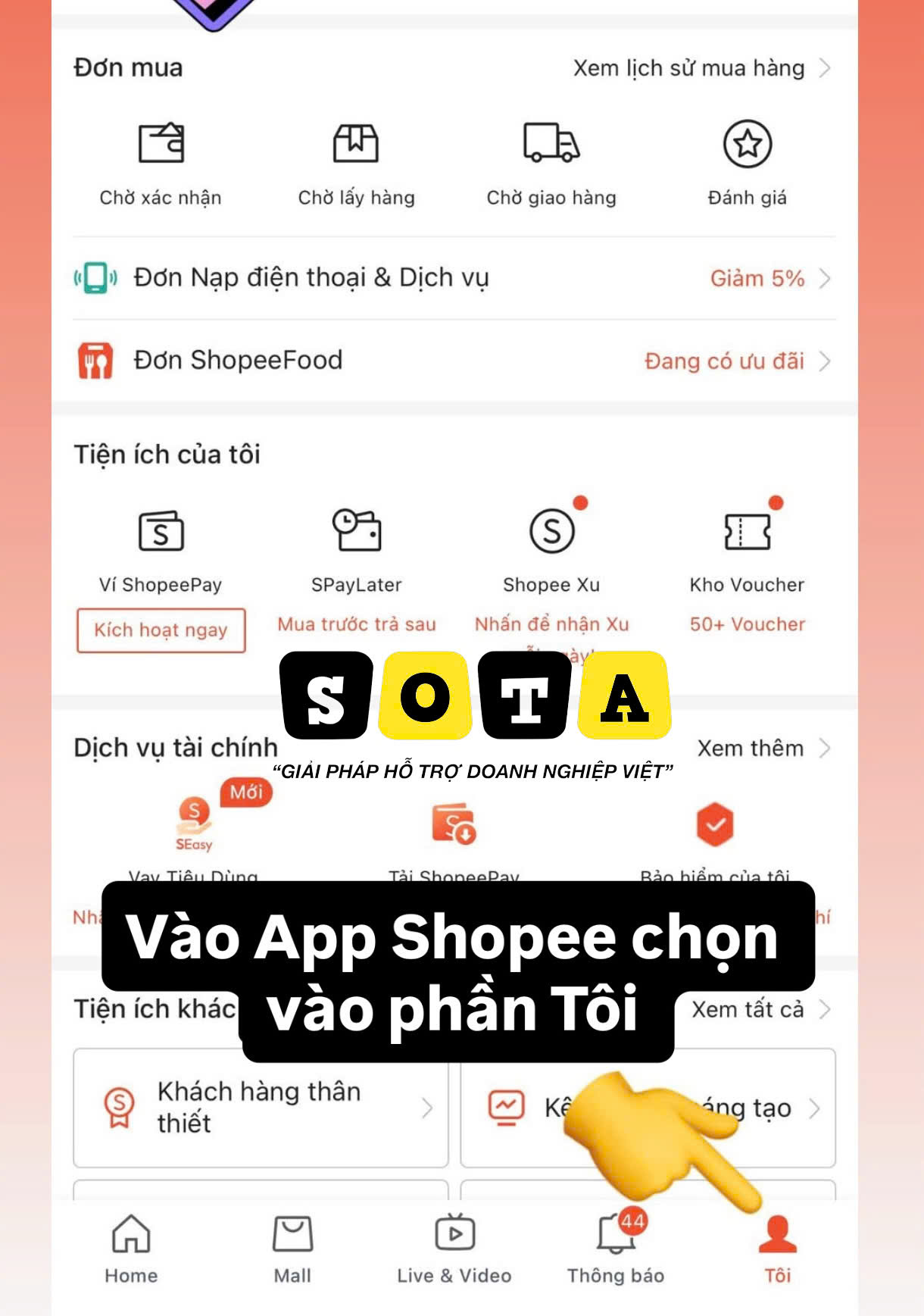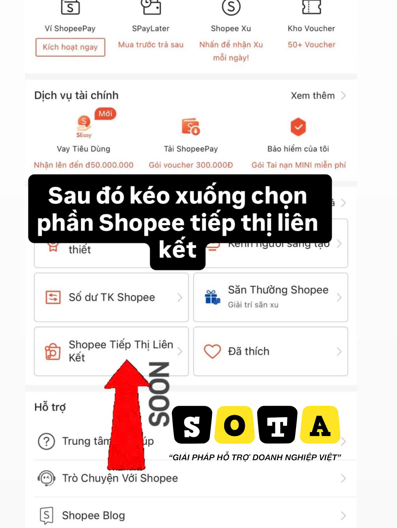 - Sau khi đăng nhập, vào mục “Tôi” → “Shopee Tiếp Thị Liên Kết.”